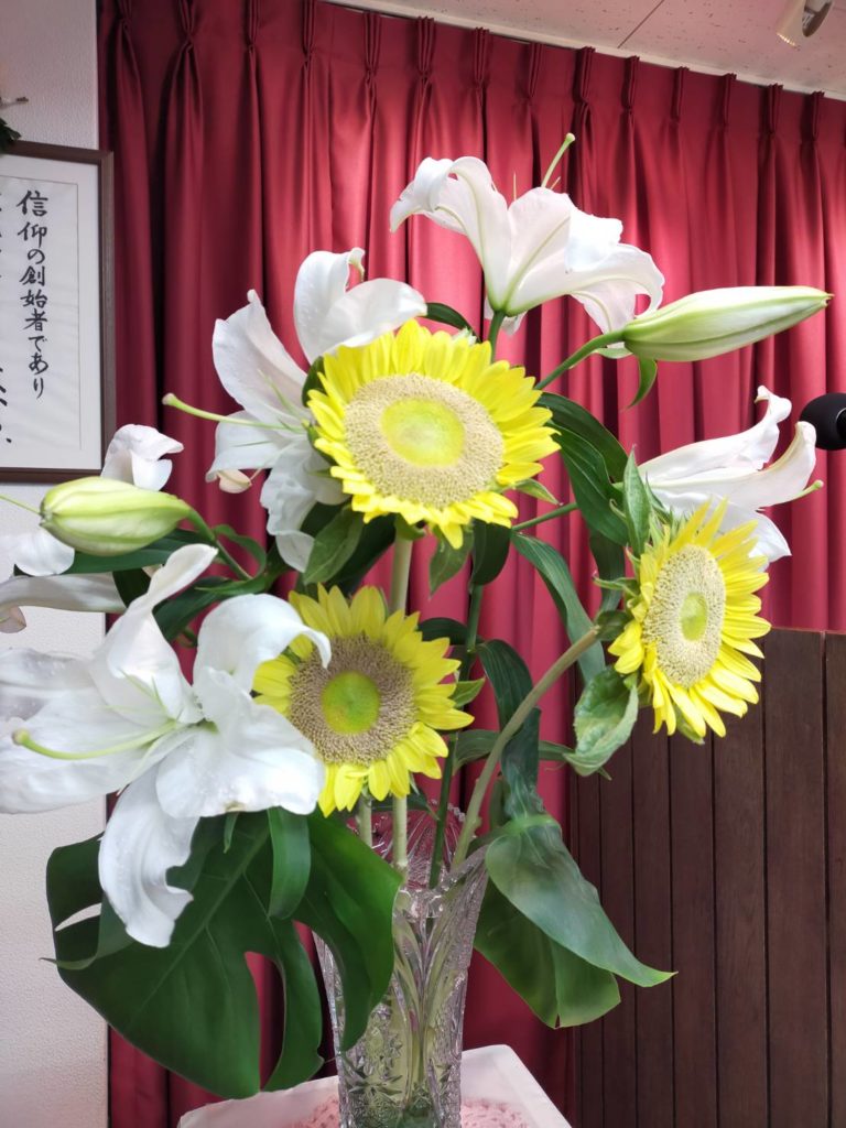 夏の講壇花part1 2025年8月15日 最終更新日時 : 2025年8月22日 墨田キリスト教会 暑さの中ですが、花たちは元気に咲いています。講壇にはひまわりとカサブランカとモンステラの大きな葉が捧げられました。